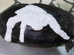 護固定甲殼,新的手術方式使用無菌自黏繃帶覆蓋,定期清潔消毒和檢查傷口。龜甲大約三個月傷口
