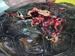 落,四肢的骨骼外露。有時患部能自然痊愈,常能見到殘肢的個體。多數骨骼外露的病龜會死